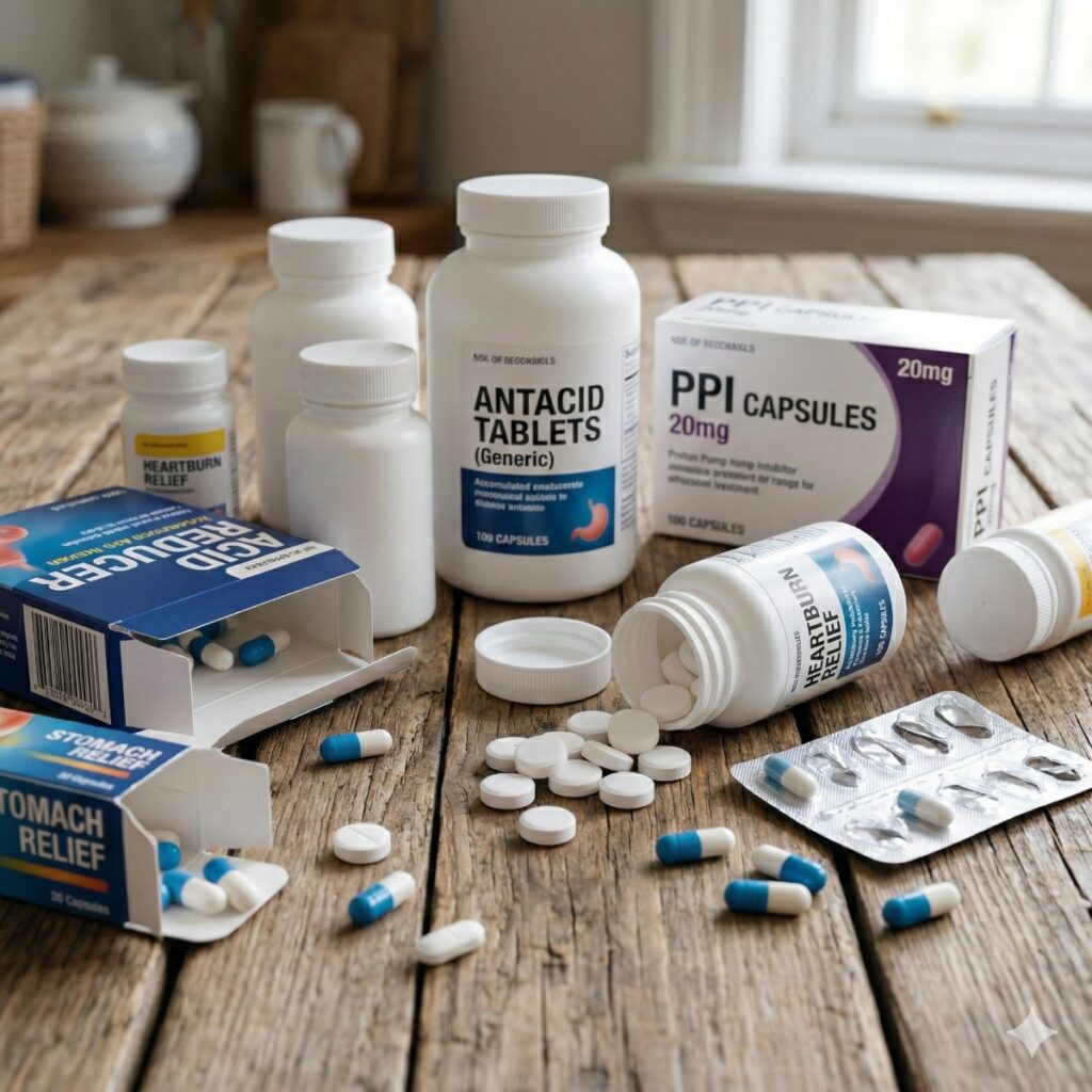 The conventional response to symptoms like heartburn, reflux, and bloating is acid suppression. Antacids neutralise stomach acid temporarily. Proton pump inhibitors (PPIs) — medications like omeprazole — go further: they block acid production at source.